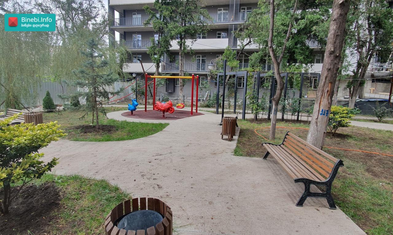 2 ოთახიანი ბინა, აივნით, ვენტრალური გათბობით, ელექტროობით და მიმდინარე რემონტით,სველი წერტილი და აივანი სრულად მოპირკეთებულია,კორპუსსში მიმდინარეობს ვიდეო კონტროლი, ფუნქციონირებს უსაფრთხოების სამსახური და კონსიერჟი.