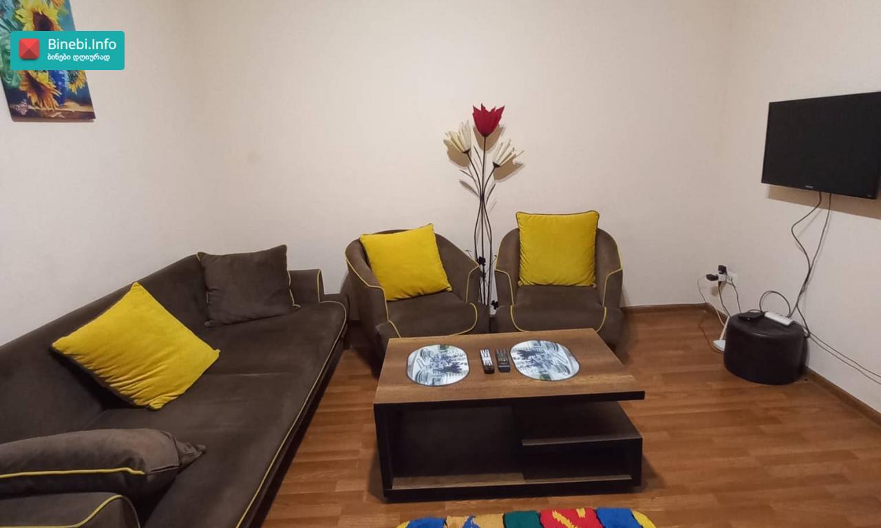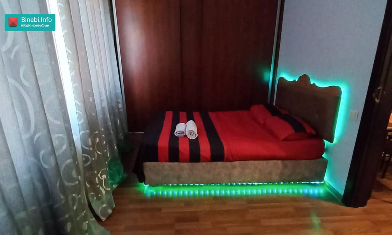ბინაში არის ყველანაირი კომფორტი: ტელევიზია SILK TV გადახვევის რეჟიმით, ინტერნეტი, WIFI, ცხელი-ცივი წყალი, გაზი, ტელევიზორი. აბაზანა, ახალი პირსახოცები, ახალი თეთრეული, მყუდრო გარემო. კარგი ხედით და რაც ყველაზე მთავარია არის სისუფთავე!!! ყოველი გამოსული ადამიანის შემდეგ ბინა ლაგდება თავიდან ბოლომდე!!! იცვლება თეთრეული პირსახოცები და ა.შ 3 ჯერ და მეტჯერ ამოსვლის შემთხვევაში მოქმედებს შეღავათები. ფასი 20 ლარიდან 70 ლარამდე