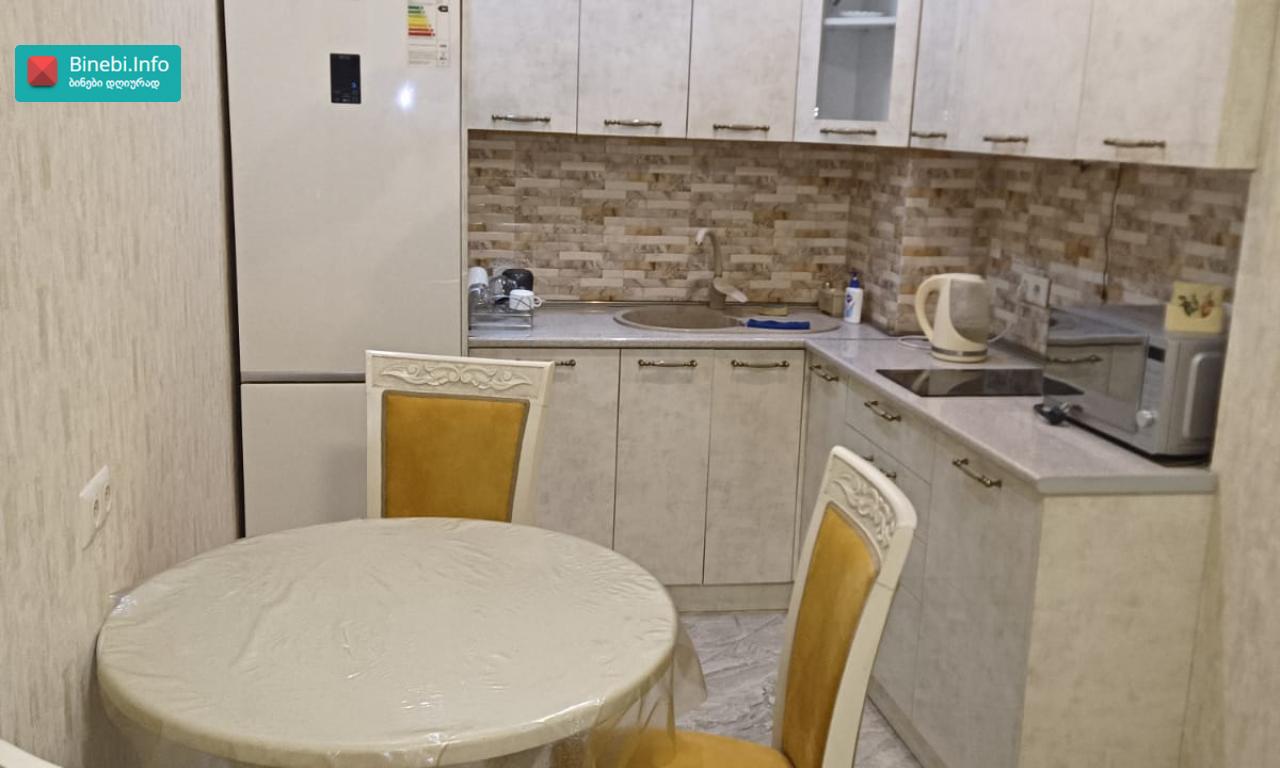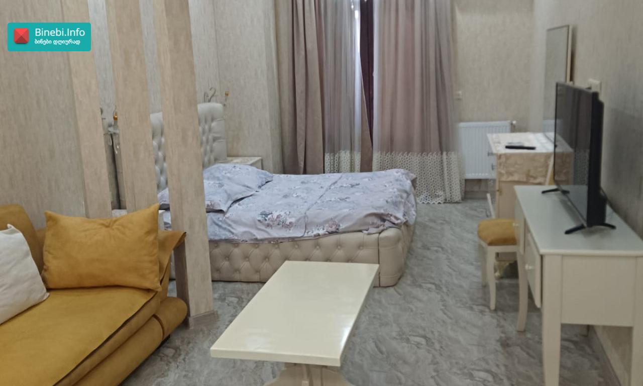 ქ. თბილისში, ჟ. შარტავას ქუჩის 39-ში მდებარე პრემიუმ კლასის ახალაშენებულ მრავალსართულიან საცხოვრებელ სახლში, მე-14 სართულზე იყიდება ბინა, რომლის საერთო ფართია 128, 5 კვ.მ ბინის საერთო დახასიათება და ექსიპლიკაცია ჭერის სიმაღლეა 3, 1 მეტრი; ბინას აქვს ორი საძინებელი: ერთი საძინებელი ოთახის ფართია - 19, 1 კვ.მ; მეორე საძინებელი ოთახის ფართია 14, 9 კვ.მ სტუდიოს ტიპის მისაღები ოთახის ფართი სამზარეულოთი - 38, 4 კვ.მ; გარდერობის ოთახი ფართით - 6, 0 კვ.მ; შემოსასვლელი ჰოლის ფართი - 11, 4 კვ.მ ბინაში არის 2 სველი წერტილი: ერთი სველი წერტილის ფართია 3, 7 კვ.მ მეორე სველი წერტილის ფართია - 1, 6 კვ.მ; ბინას აქვს სამი აივანი, რომლებზედაც მოწყობილია განათება: ერთი აივნის ფართია - 2, 4 კვ.მ; მეორე აივნის ფართია - 2, 5 კვ.მ; მესამე აივნის ფართია - 4, 1 კვ.მ და ორი „ფრანგული“ აივანი; ბინას აქვს ტერასა, სადაც გაყვანილია განათება, წყალი, კანალიზაცია. ტერასის ფართია - 24, 4 კვ.მ ფანჯრის ღიობებში დამონტაჟებულია ალუმინის თერმო პროფილის ფერადი (ყავისფერი) ფანჯრები; შემოსასვლელი კარი ლითონისაა; ბინაში დამონტაჟებულია ვიდეო დომოფონი; ცენტრალური გათბობა მოწყობილია სექციური რადიატორებით, ხოლო სამზარეულოსა და სველ წერტილში დამატებით დამონტაჟებულია იატაკის გათბობა. სველ წერტილებში და სამზარეულოში დამონტაჟებულია გამწოვი და მოდინებითი სავენტილაციო სისტემა. მაცივარი, ჭურჭლის სარეცხი მანქანა, კონდიციონერი, სარეცხი მანქანა, ნაწილობრივ ავეჯი „ჩაშენებულია“ კედელში. შენობას აქვს ორსართულიანი ავტოსადგომი, ემსახურება ავტოამწე ლიფტი და მუშაობს პულტით. 1 სართულზე განთავსებულია ავტოსადგომი - 18, 5 კვ. მ; ასევე -1 სართულზეა დამხმარე ფართი (სარდაფი)- 5,4 კვ.მ ლითონის კარით და თაროებით; პროექტი: არასტანდარტული მდგომარეობა: ახალი რემონტი სტატუსი: ახალი აშენებული შენობა მიღებულია ექსპლუატაციაში, გატარებულია საჯარო რეესტრში. დამატებითი ინფორმაცია: ბუნებრივი აირი; ავტოფარეხი 1; ლიფტი 2; სათავსო -1 ; აივანი -3 სტანდარტული, 2 „ფრანგული“; ცენტრალური გათბობა სექციური რადიატორებით; ახლოს მდებარე მნიშვნელოვანი ობიექტები: სუპერმარკეტები (კარფური, ნიკორა, სპარი), აფთიაქი PSP, სუფთა სახლი, საბავშვო ბაღი, კარდიო კლინიკა „Cardio Clinic“, ორი სტომატოლოგიური კლინიკა, სპორტული დარბაზი „ურბან ფიტნესი“, ესთეტიკის ცენტრი „DESSANGE Paris“, კაფე-ბარი.
