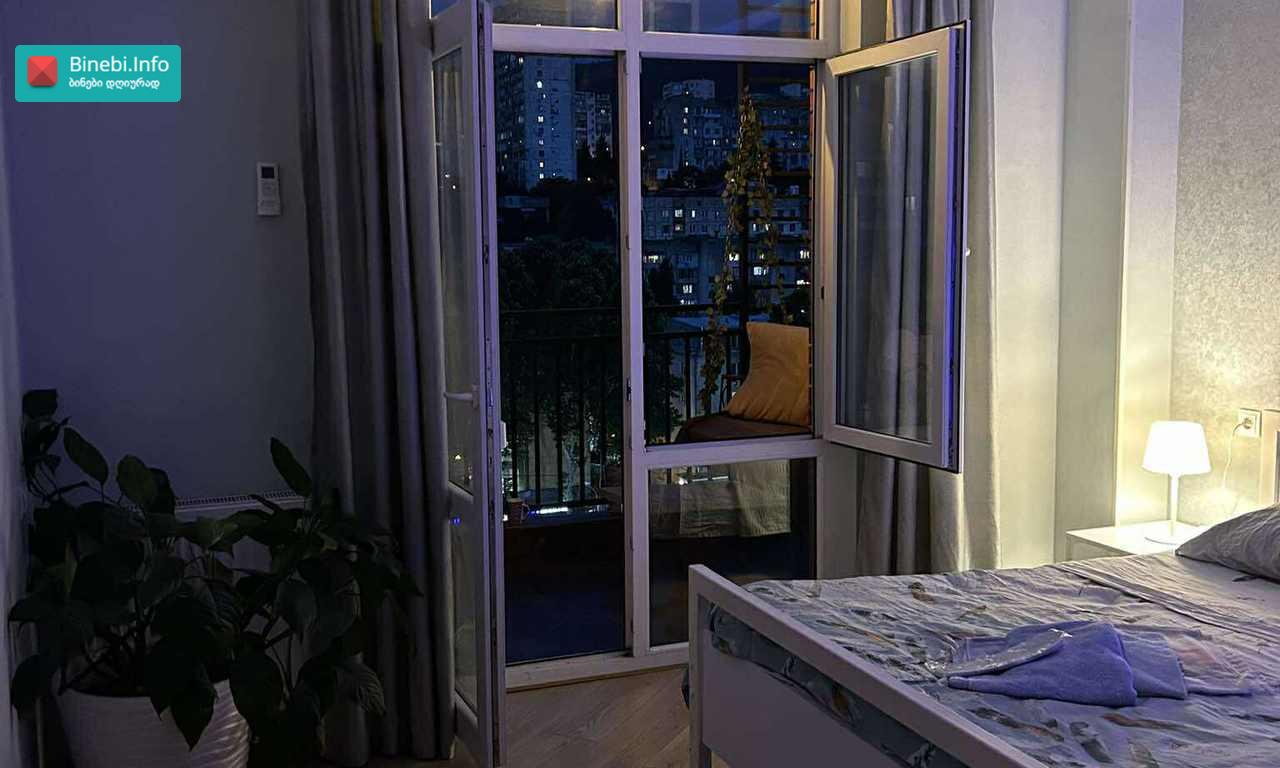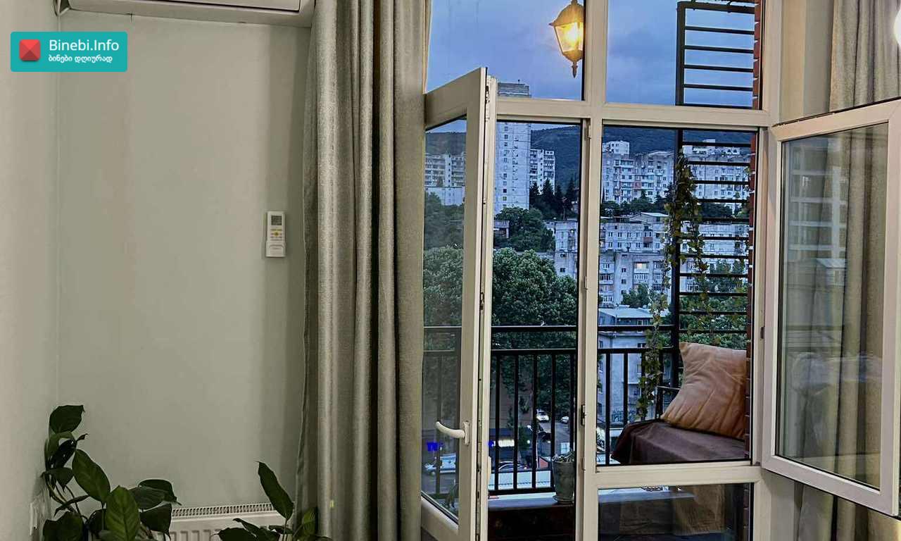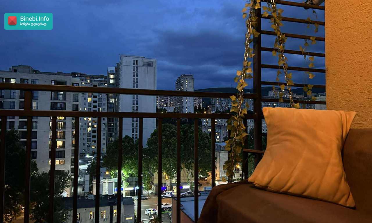 Apartment for rent in Tskneti district /Vake/, in the best location 15 minutes from Vaki Park, $350 per month, all year round..A 2-room isolated apartment in a central location, with a large veranda of 12 sq m, with a view of nature, with a parking space! In an ecologically clean place with a total area of 60 m², the house is located in a prestigious, quiet, green and safe area, close to the forest and equipped with all kinds of equipment, internet. There are stadiums, simulators and green recreation area for children and a forest park around. 599437535