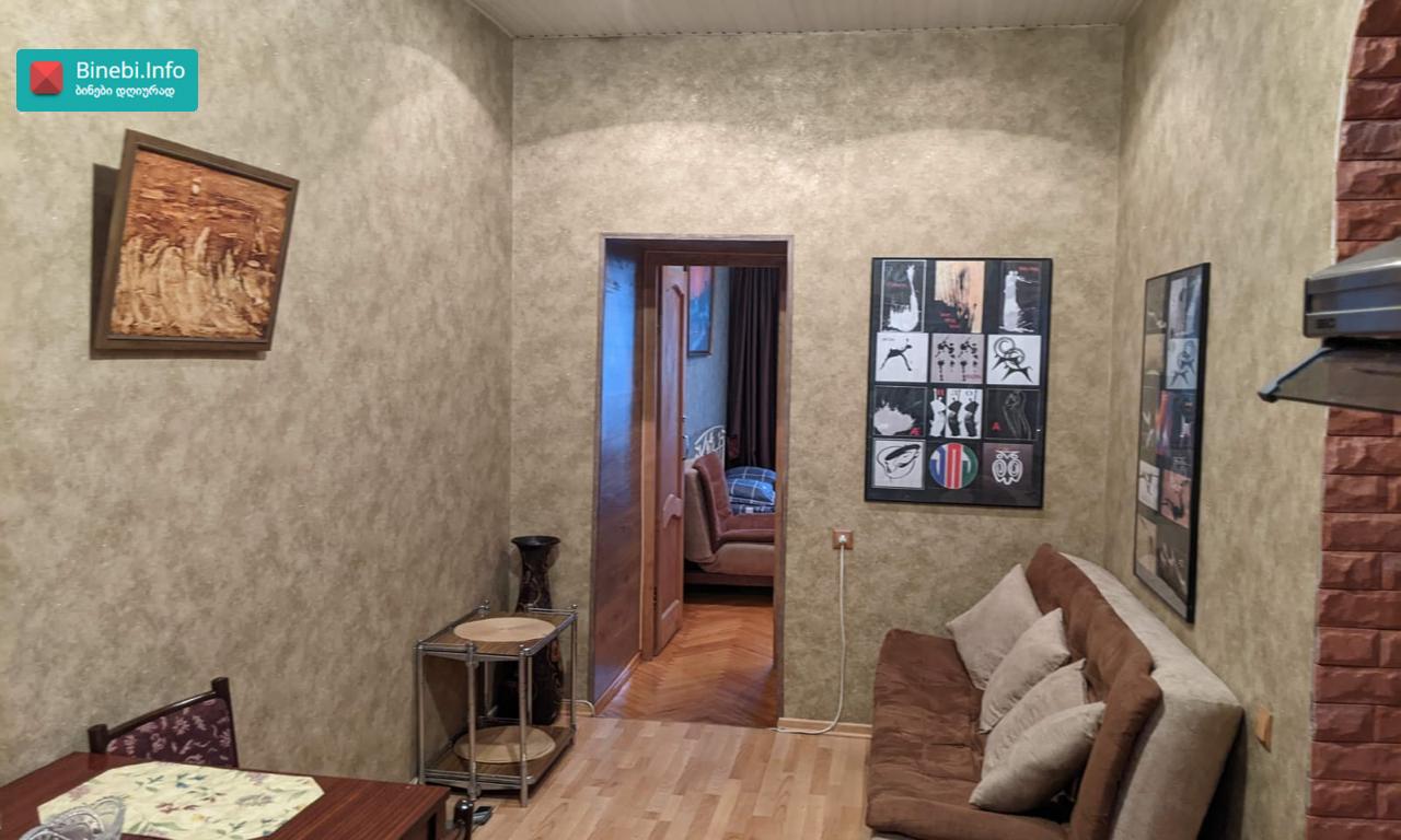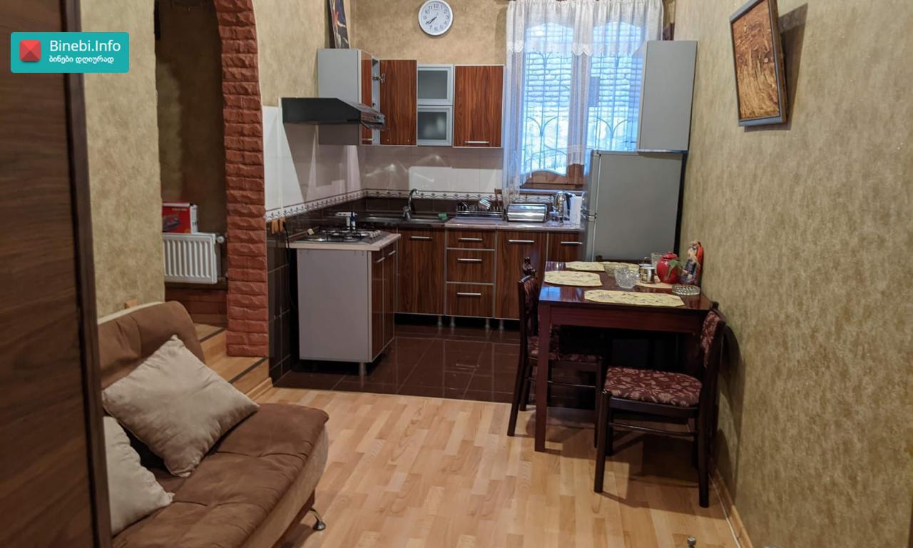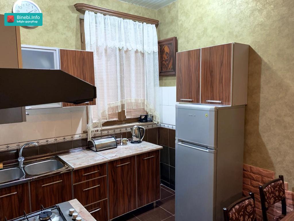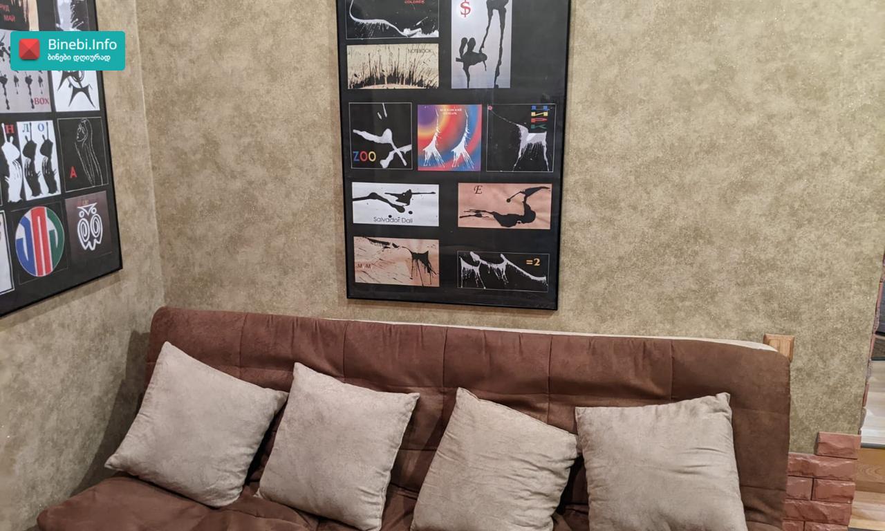 გვერდით ლაღიძის წყლები და მაგთის ოფისია , ეზოში ავტო პარკინგი, შიდა ფართი 41.17 კვადრატი , მეორე სართული, ორი ოთახი , მეორე ცალკე შემოსავლელი , დიდი საერთო აივანი, ცენტრალური გათბობა , კონდენციონერი ზამთარ- ზაფხული, გაზი , ცხელი წყალი , სამზარეულო , ელექტრო და გაზის პლიტა , ჭურჭლის სარეცხი ნიჟარა, საშხაპე , საპირფარეშო , ხელსაბანი, სარეცხი მანქანა , მაცივარი , ტელევიზორი , პარკეტი , ორი შესასვლელი რკინის კარი , პლასტიკური ფანჯარა ეზოს ხედით , მეორე ფანჯარა, WF , და დიდი საკუჭნაო( შეკიდული), გარეთა გასასვლელიდან. ორი დივანი , ორი სავარძელი , ჟურნალების მაგიდა , გასაშლელი მაგიდა 6- სკამით , (ჩეხური), სამზარეულო კუთხე ..