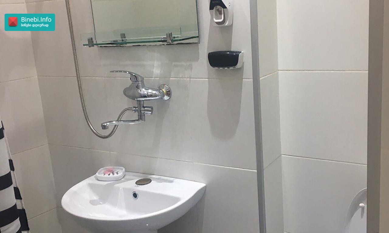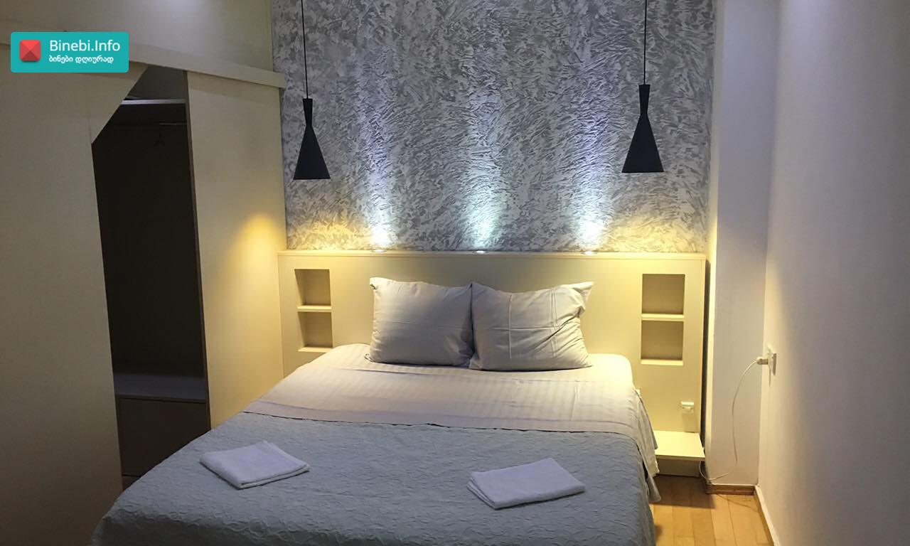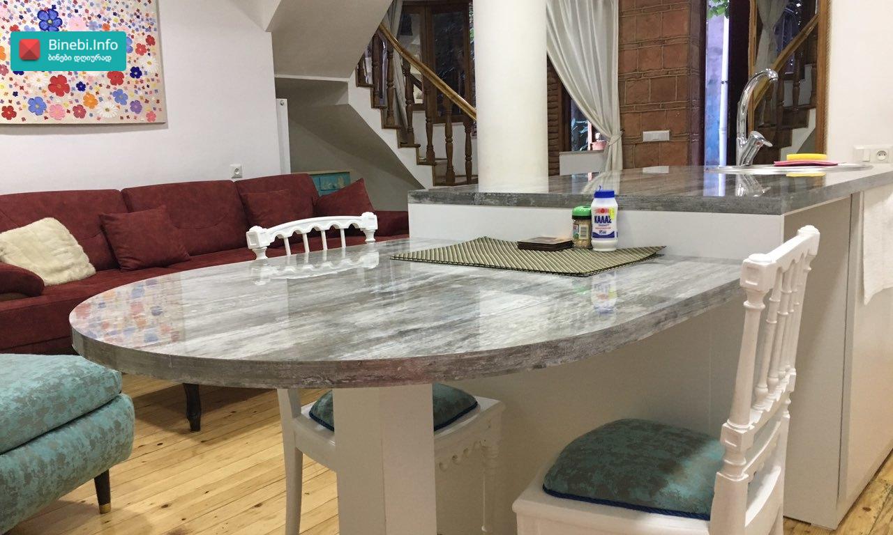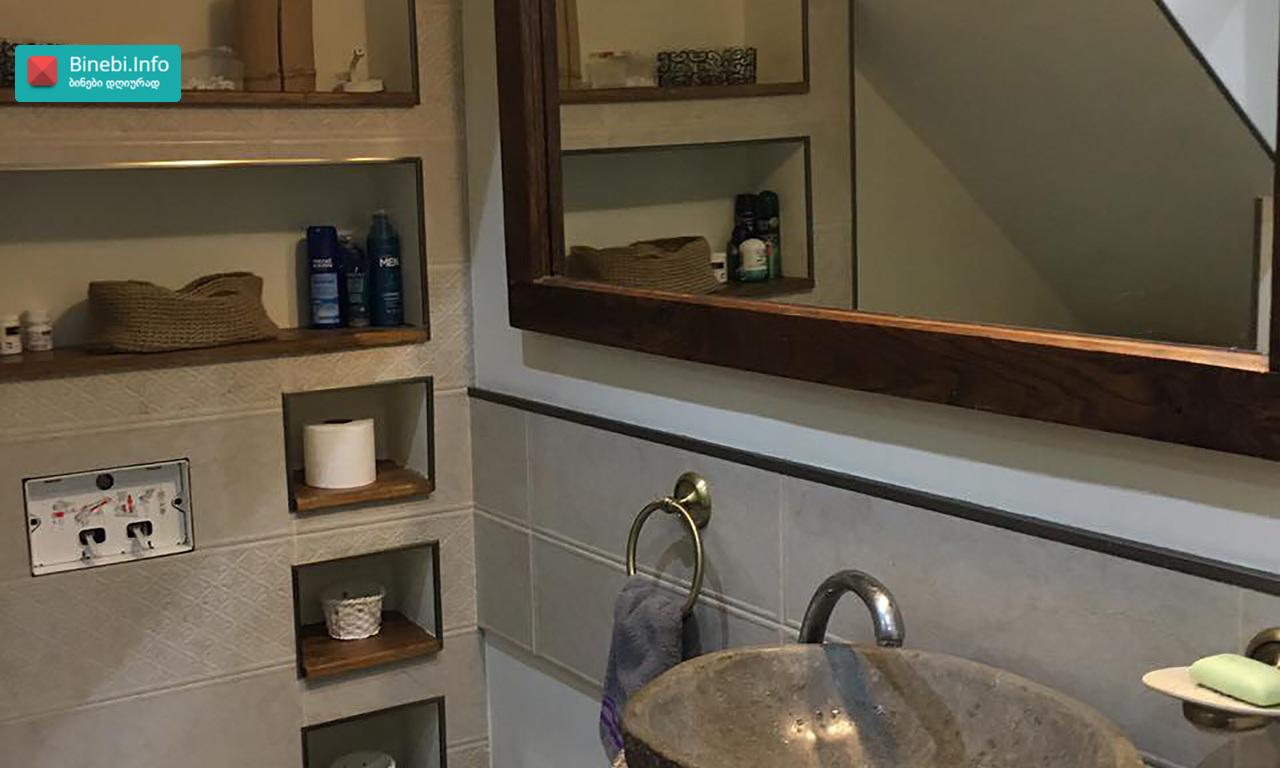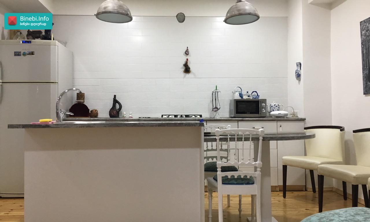 ქ. თბილისში, ჟ. შარტავას ქუჩის 39-ში მდებარე პრემიუმ კლასის ახალაშენებულ მრავალსართულიან საცხოვრებელ სახლში, მე-14 სართულზე იყიდება ბინა, რომლის საერთო ფართია 128, 5 კვ.მ ბინის საერთო დახასიათება და ექსიპლიკაცია ჭერის სიმაღლეა 3, 1 მეტრი; ბინას აქვს ორი საძინებელი: ერთი საძინებელი ოთახის ფართია - 19, 1 კვ.მ; მეორე საძინებელი ოთახის ფართია 14, 9 კვ.მ სტუდიოს ტიპის მისაღები ოთახის ფართი სამზარეულოთი - 38, 4 კვ.მ; გარდერობის ოთახი ფართით - 6, 0 კვ.მ; შემოსასვლელი ჰოლის ფართი - 11, 4 კვ.მ ბინაში არის 2 სველი წერტილი: ერთი სველი წერტილის ფართია 3, 7 კვ.მ მეორე სველი წერტილის ფართია - 1, 6 კვ.მ; ბინას აქვს სამი აივანი, რომლებზედაც მოწყობილია განათება: ერთი აივნის ფართია - 2, 4 კვ.მ; მეორე აივნის ფართია - 2, 5 კვ.მ; მესამე აივნის ფართია - 4, 1 კვ.მ და ორი „ფრანგული“ აივანი; ბინას აქვს ტერასა, სადაც გაყვანილია განათება, წყალი, კანალიზაცია. ტერასის ფართია - 24, 4 კვ.მ ფანჯრის ღიობებში დამონტაჟებულია ალუმინის თერმო პროფილის ფერადი (ყავისფერი) ფანჯრები; შემოსასვლელი კარი ლითონისაა; ბინაში დამონტაჟებულია ვიდეო დომოფონი; ცენტრალური გათბობა მოწყობილია სექციური რადიატორებით, ხოლო სამზარეულოსა და სველ წერტილში დამატებით დამონტაჟებულია იატაკის გათბობა. სველ წერტილებში და სამზარეულოში დამონტაჟებულია გამწოვი და მოდინებითი სავენტილაციო სისტემა. მაცივარი, ჭურჭლის სარეცხი მანქანა, კონდიციონერი, სარეცხი მანქანა, ნაწილობრივ ავეჯი „ჩაშენებულია“ კედელში. შენობას აქვს ორსართულიანი ავტოსადგომი, ემსახურება ავტოამწე ლიფტი და მუშაობს პულტით. 1 სართულზე განთავსებულია ავტოსადგომი - 18, 5 კვ. მ; ასევე -1 სართულზეა დამხმარე ფართი (სარდაფი)- 5,4 კვ.მ ლითონის კარით და თაროებით; პროექტი: არასტანდარტული მდგომარეობა: ახალი რემონტი სტატუსი: ახალი აშენებული შენობა მიღებულია ექსპლუატაციაში, გატარებულია საჯარო რეესტრში. დამატებითი ინფორმაცია: ბუნებრივი აირი; ავტოფარეხი 1; ლიფტი 2; სათავსო -1 ; აივანი -3 სტანდარტული, 2 „ფრანგული“; ცენტრალური გათბობა სექციური რადიატორებით; ახლოს მდებარე მნიშვნელოვანი ობიექტები: სუპერმარკეტები (კარფური, ნიკორა, სპარი), აფთიაქი PSP, სუფთა სახლი, საბავშვო ბაღი, კარდიო კლინიკა „Cardio Clinic“, ორი სტომატოლოგიური კლინიკა, სპორტული დარბაზი „ურბან ფიტნესი“, ესთეტიკის ცენტრი „DESSANGE Paris“, კაფე-ბარი.