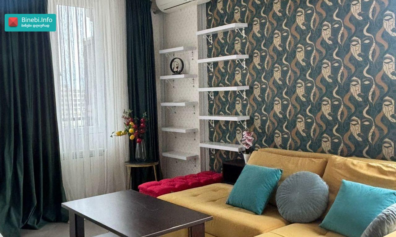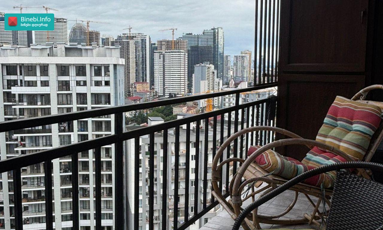 გუდაურის N 3-ში, მე -7 სართული, 4 ოთახი, 147 კვ. ბინა. ბინაშია 2 სველი წერტილი, 2 საძინებელი, დამოუკიდებელი სამზარეულო,სასტუმრო ოთახი მოქმედი ბუხრით. ბინა აღჭურვილია ყველა საჭირო ტექნიკითა და ავეჯით (3კონდიციონერი, 3 ტელევიზორი, ინტერნეტი, ტელევიზია, ჭურჭელი, მაცივარი, ჭურჭლის სარეცხი მანქანა, სარეცხის მანქანა საშრობით) სადარბაზოში მოქმედებს ვიდეო კონტროლი და ყოველდღიური დალაგების სერვისი .